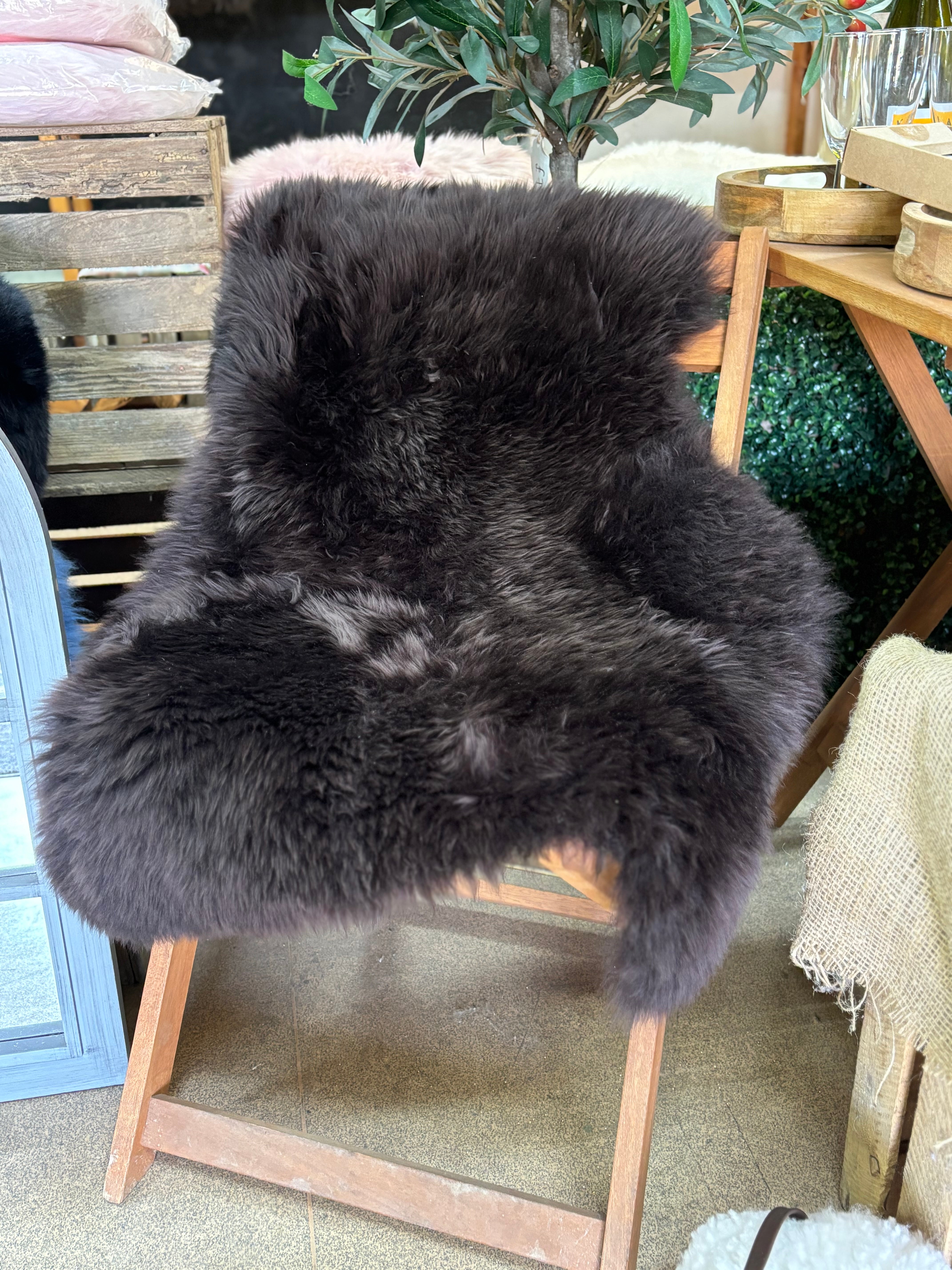 Add a touch of warmth and comfort to your home with this Large Sheepskin Rug, crafted from 100% genuine long wool and measuring approximately 95cm. Available in a choice of natural tones including white, black, taupe, chocolate, and grey, this rug brings the cosy hygge aesthetic to any space — whether laid on the floor, draped over a chair, or used as a bedside accent.